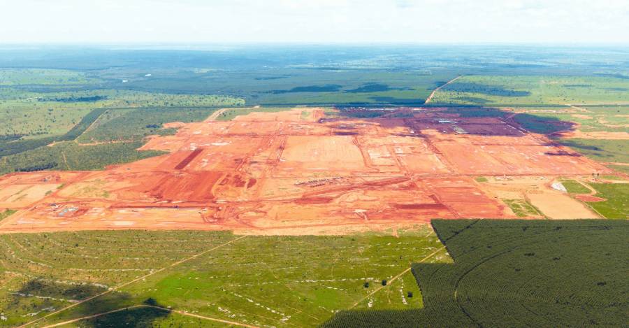 Imagen destacada: vista aérea del terreno donde se instalará la planta de celulosa de la compañía chilena Arauco, en Inocência, Mato Grosso do Sul, Brasil. Foto: Projeto Sucuriú/Reproducción