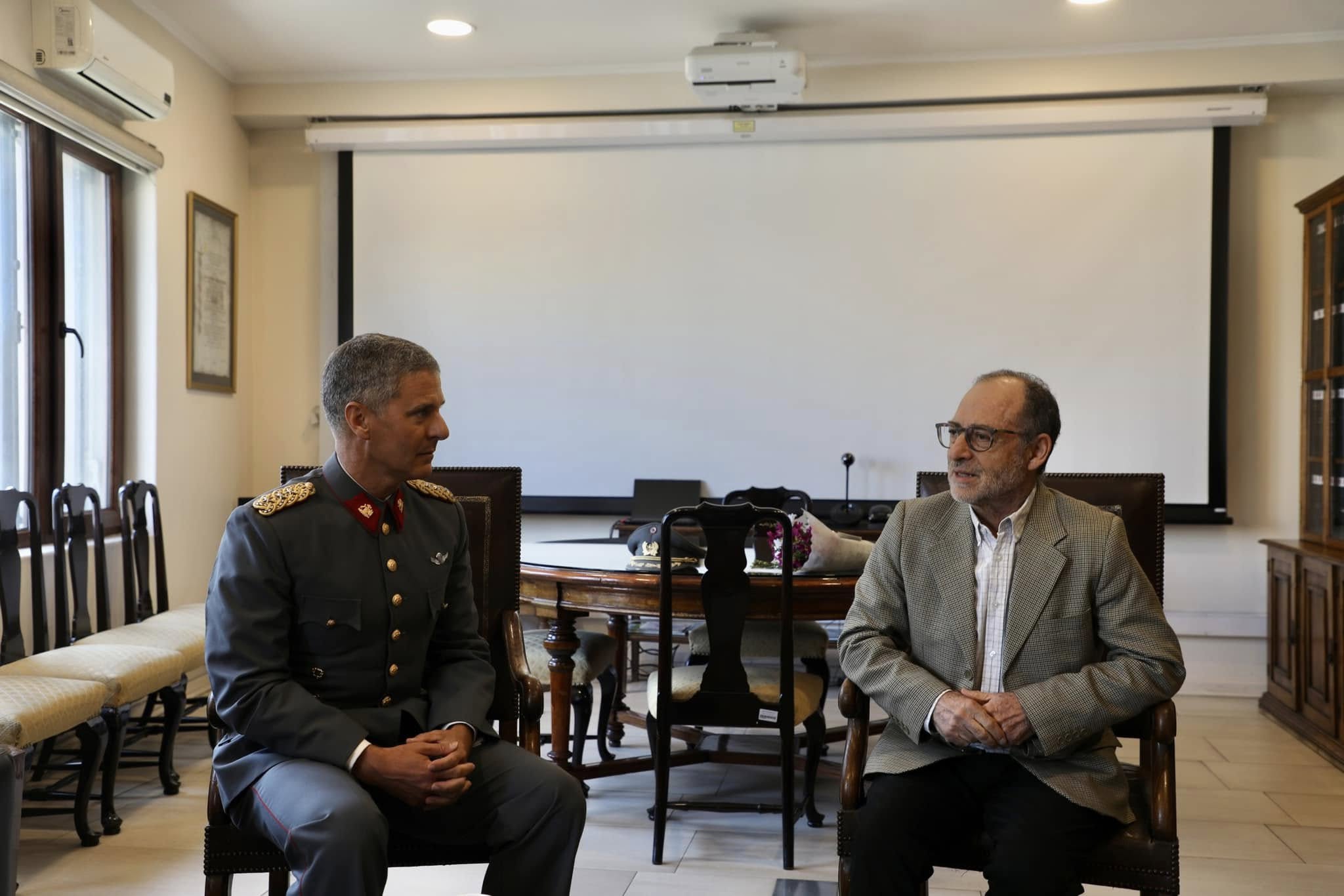 La foto de portada muestra al actual subsecretario para las Fuerzas Armadas, Galo Eidelstein Silber (PC), con el uniformado que entonces estaba asumiendo como nuevo fiscal general del Ministerio Público Militar, Felipe Véliz Forestier. Era un 15 de febrero de 2024, y Véliz, abogado de la Universidad Gabriela Mistral, hijo de un condenado por violaciones a los derechos humanos y sobrino del ex general Juan Emilio Cheyre, llegaba en su rango de coronel, el que permanece hasta el día de hoy. Fue nombrado por el Poder Ejecutivo.