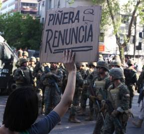 Durante la segunda noche de toque de queda en distintas ciudades de Chile, el mandatario radicalizó su discurso y aseguro que “estamos en guerra contra un enemigo poderoso, implacable, que no respeta a nada ni a nadie”. En paralelo, el control militar ya ha dejado al menos un muerto, además de múltiples heridos, incluidos niños.