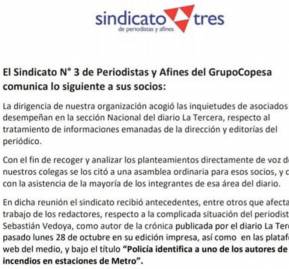 En un comunicado se afirma que los periodistas de la sección Nacional del diario se han visto obligados a firmar artículos pese a ser alterados en los procesos de edición, entre otras prácticas que apuntan a una cobertura sesgada durante la crisis de las protestas.